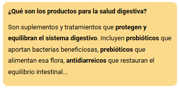 Son suplementos y tratamientos diseñados para cuidar el aparato digestivo. Entre ellos, probióticos que aportan bacterias beneficiosas, prebióticos que nutren la flora intestinal y fórmulas antidiarreicas para equilibrar el sistema.
