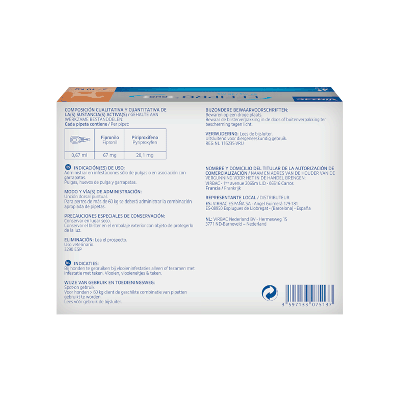 Effipro Duo pipetas antiparasitarias para perros. Nuevas Effipro duo, para la prevención de pulgas y garrapatas. Nueva fòrmula más eficaz para que tu perro este perfectamente protegido.