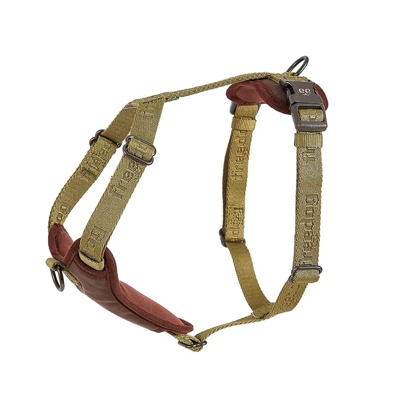 El arnés para perros Freedog Linum Green Forest ofrece una combinación perfecta de sostenibilidad y confort, con diseño acolchado y tejido reciclado para paseos seguros y agradables.