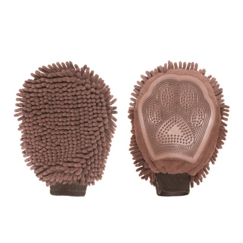 Manopla de microfibra y goma para perros y gatos diseñada para retirar el pelo muerto y secar rápidamente tras el baño. Absorbente, lavable y muy suave, apta para todo tipo de pelajes y tamaños.