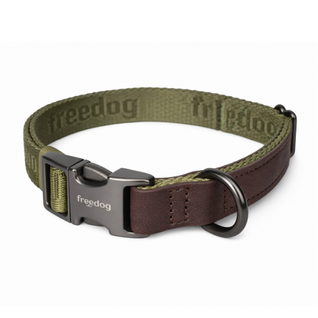 El collar Freedog Linum Green Forest para perros es un collar regulable y ergonómico confeccionado con materiales reciclados, en tono verde, que garantiza confort, seguridad y compromiso ambiental.