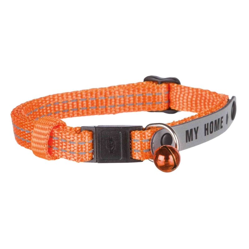 Collar portadirecciones Trixie Cat: correa plana ajustable con cascabel y elementos reflectantes.