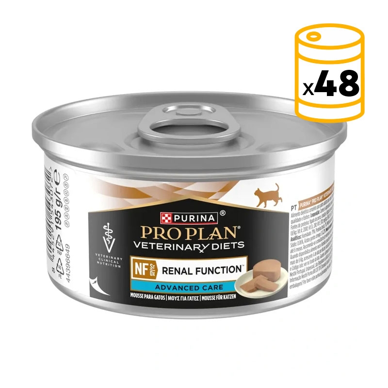 Purina Pro Plan Feline NF Advance Care Renal Function Veterinary Diets es una opción apetitosa y altamente digestible para gatos que necesitan una dieta específica para mejorar la función renal en casos de insuficiencia renal crónica. Este alimento ofrece proteínas de calidad en cantidades moderadas, aliviando la carga renal y ayudando al mantenimiento de la masa muscular. Su bajo contenido de fósforo beneficia la salud renal, y el pH urinario óptimo contribuye a un entorno urinario alcalino.