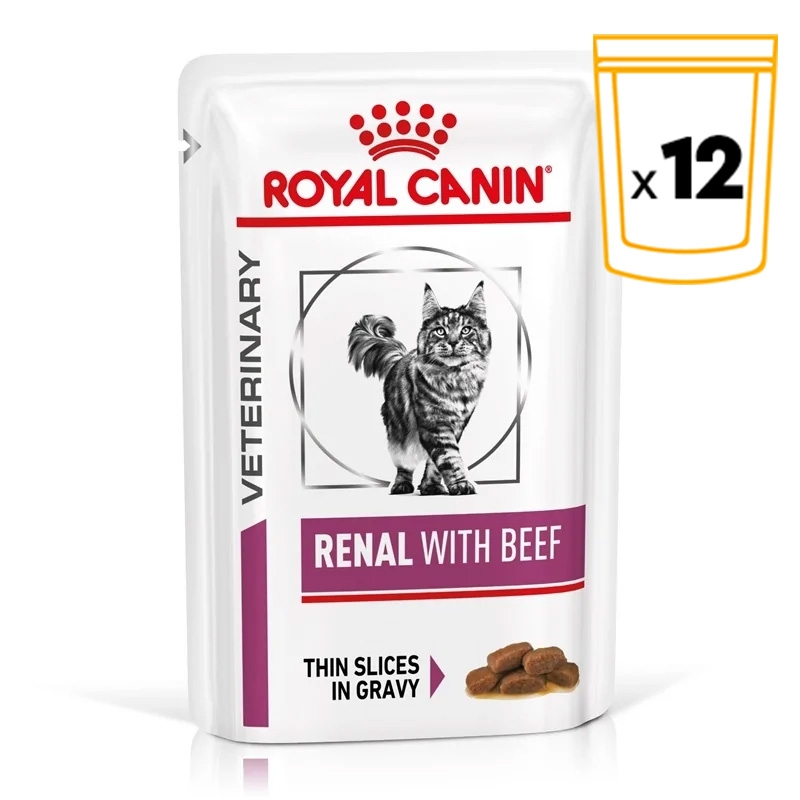 Alimento húmedo Royal Canin para gatos con insuficiencia renal crónica. Completo alimento dietético que ayuda a tu felino a tener una mejor salud. Con un exquisito sabor a ternera que será irresistible para el paladar de nuestra mascota.
