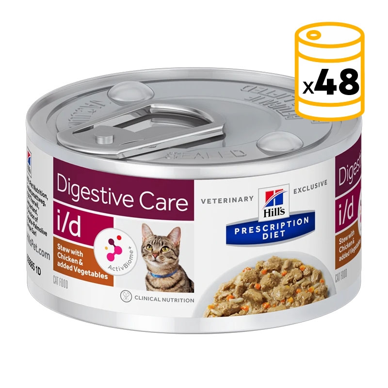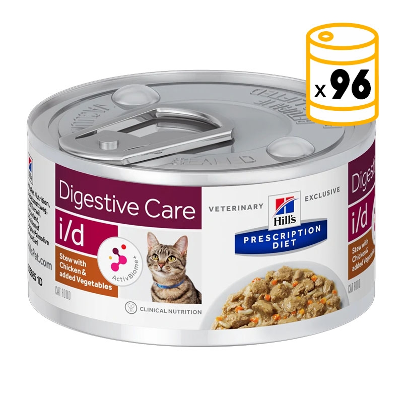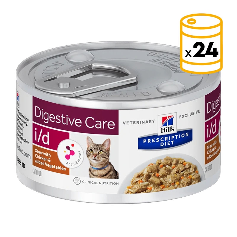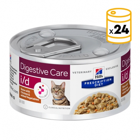 Hill's Prescription Diet i/d estofado para gatos con pollo y verduras es completo para trastornos digestivos.