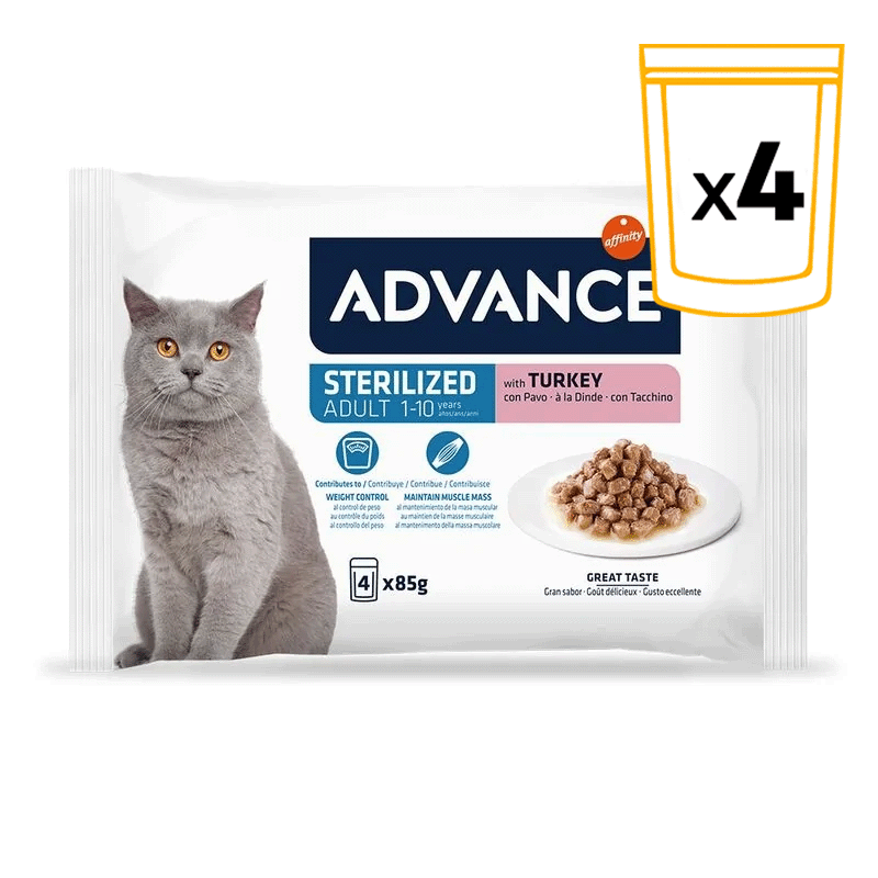 La Advance Adult Sterilized Comida Húmeda para Gatos Esterilizados con Pavo es perfecta para mantener a tu gato en su peso ideal, sano y completamente nutrido. Su receta baja en calorías está diseñada para ayudar a los gatos esterilizados a evitar el aumento de peso, mientras que su combinación de nutrientes esenciales, como la vitamina E y la taurina, apoya el sistema inmunitario y la visión saludable.