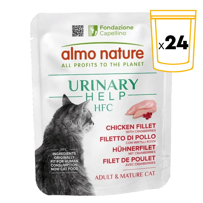 Alimento húmedo para gatos en caldo HFC con pechuga de pollo y arándanos rojos, sin aditivos y con mucha humedad, orientado a elevar la hidratación y cuidar el sistema urinario.
