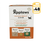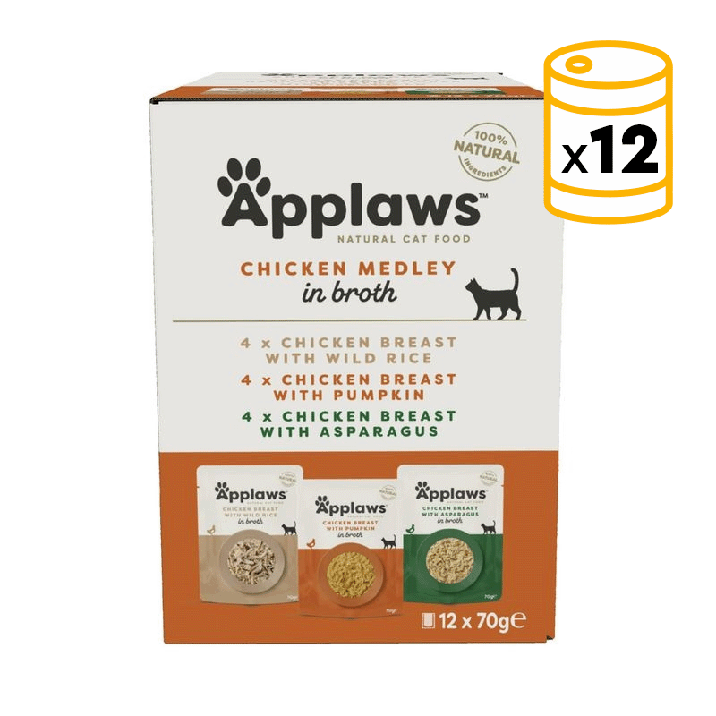 El Applaws Gato Adulto Sobre Caldo Pollo Multipack incluye 12 sobres en salsa con las siguientes variedades: