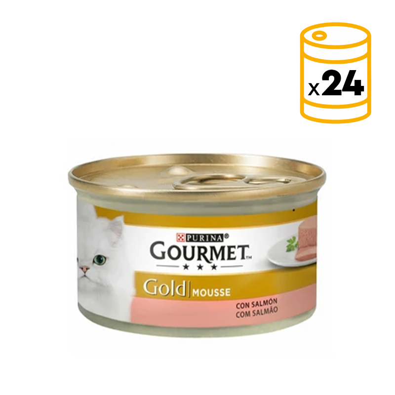 Purina ha creado para la gama Gold de comida húmeda para gato una sabrosa receta con salmón con una textura suave y exquisita. Esta latita esta compuesta por pequeñas porciones de salmón que se mezclan con una gustosa mousse muy blanda y fácil de masticar.