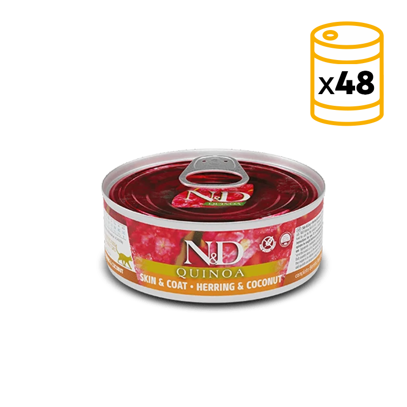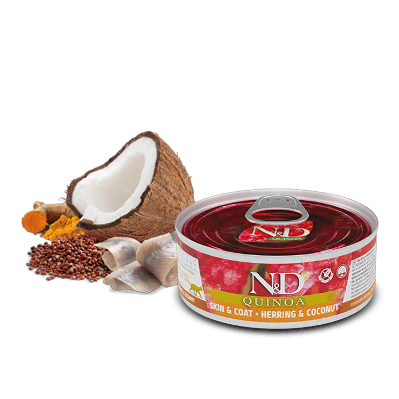 N&D Quinoa Feline ofrece una solución completa y equilibrada para el cuidado nutricional de gatos, especialmente aquellos con piel sensible. Este alimento húmedo completo, conocido como Skin&Coat Arenque lata, está formulado para abordar intolerancias a ingredientes y nutrientes, brindando una opción nutritiva y deliciosa para los felinos con necesidades dietéticas específicas.