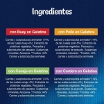 Variedad de Recetas: El multipack incluye cuatro sabores variados: buey, pollo, conejo y cordero. Esta amplia gama asegura que tu gato siempre tenga una comida nueva y emocionante para disfrutar, evitando el aburrimiento y estimulando su apetito.