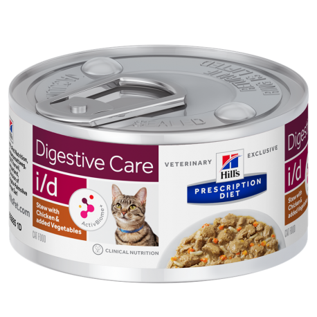 Hill's Prescription Diet i/d estofado para gatos con pollo y verduras es completo para trastornos digestivos.