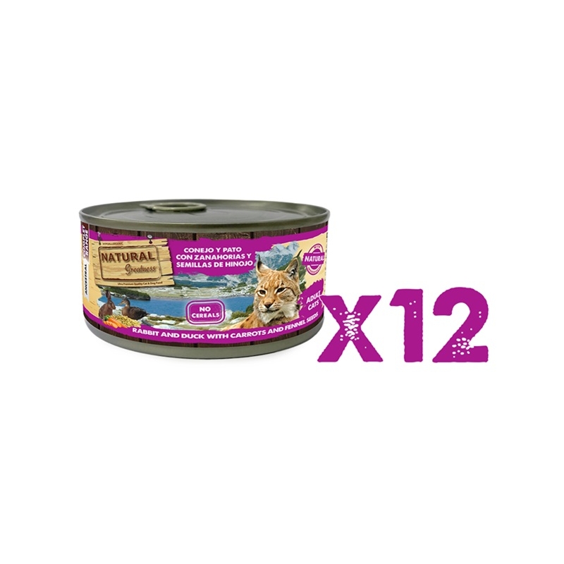 El Natural Greatness Gatos Comida Húmeda con Conejo y Pato es un alimento húmedo completo para gatos adultos y gatitos. Elaborado con conejo fresco y pato de calidad humana, acompañado de zanahoria y semillas de hinojo, este alimento húmedo greatness aporta vitaminas, proteínas y minerales que favorecen la digestión y la vitalidad de tu felino.