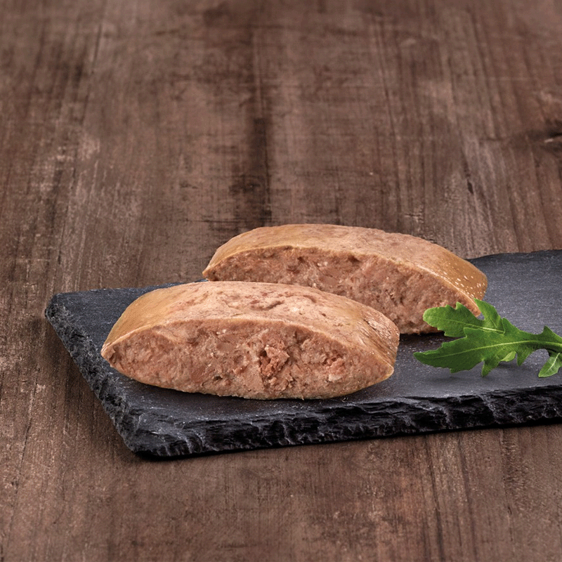 Componentes analíticos: Proteína 10,3%, Contenido en grasa 4%, Fibras brutas 0,4%, Materia inorgánica 2,8%, Humedad 79%, Omega 6 0,7%, Omega 3 0,3%.