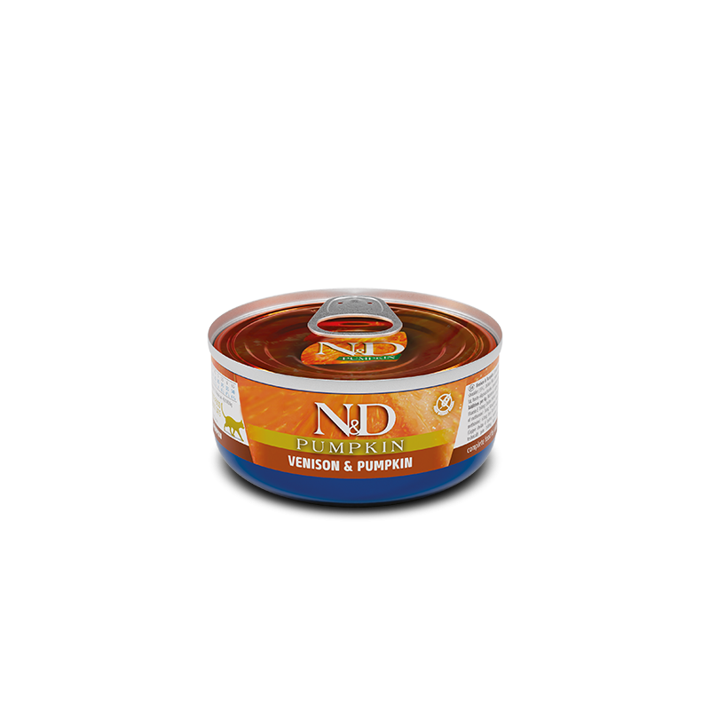 Explora la experiencia gastronómica de N&D Pumpkin Feline, una opción completa y sabrosa para gatos adultos. Esta comida húmeda, elaborada con venado y calabaza, ofrece una combinación de ingredientes de alta calidad que proporcionan una nutrición óptima para tu felino.