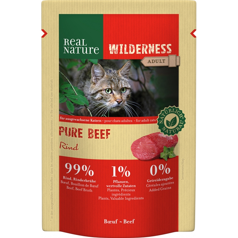 La fórmula de Real Nature Wilderness para gatos con ternera se basa en la dieta ancestral de los gatos salvajes, lo que garantiza una alimentación adecuada para tu mascota. Utilizando ingredientes de origen animal, esta comida ofrece la mejor nutrición posible, tal como lo haría en la naturaleza, adaptada a las necesidades de un gato moderno.