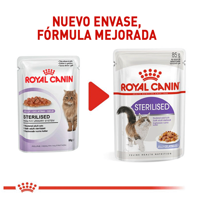Comida húmeda para gatos: Royal canin Sterilised comida húmeda para gatos adultos. Comida húmeda en sobres indicada para gatos esterilizados a partir de los 12 meses de edad.