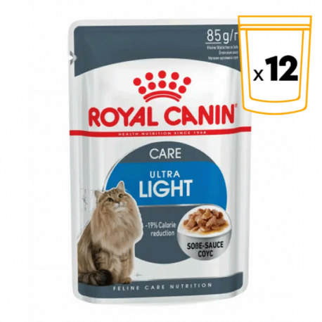 Royal Canin Ultra Light es un alimento húmedo dirigido a gatos adultos (a partir de los 12 meses) que tienen una tendencia al sobrepeso. Este alimento se caracteriza por su bajo contenido calórico en comparación con las opciones convencionales, lo que lo convierte en la elección perfecta para mantener a tu gato en un peso saludable.