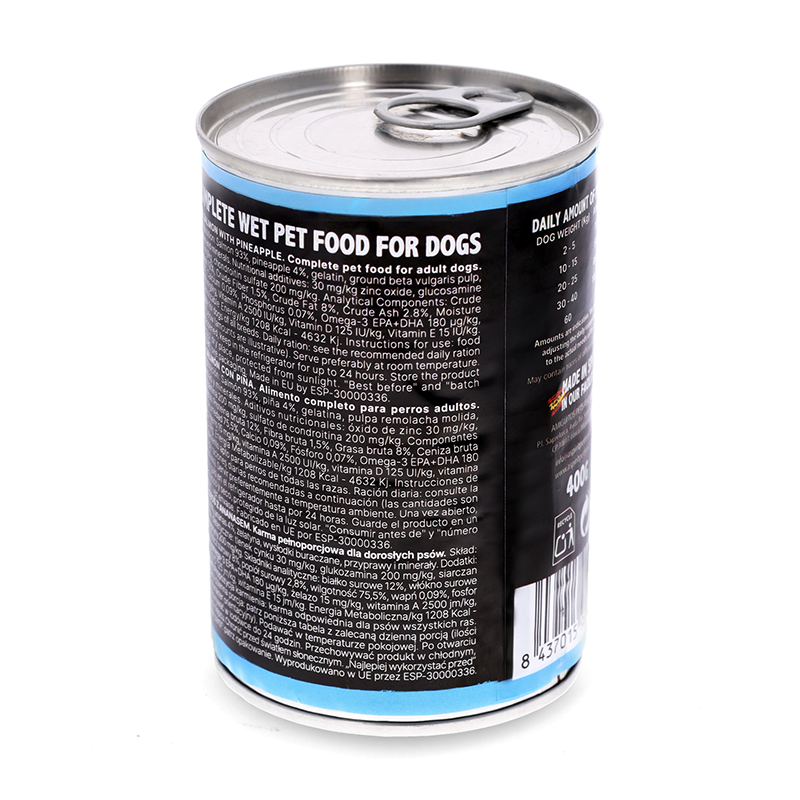 Descubre nuestra irresistible opción de alimento húmedo de salmón con piña, presentada en envases de 400 gramos. Este delicioso producto fusiona la suavidad del salmón con el frescor de la piña, ofreciendo a tu mascota una experiencia culinaria única y nutritiva. Elaborado con ingredientes de primera calidad, este alimento proporciona una nutrición completa y equilibrada, garantizando el bienestar y la salud de tu fiel amigo.