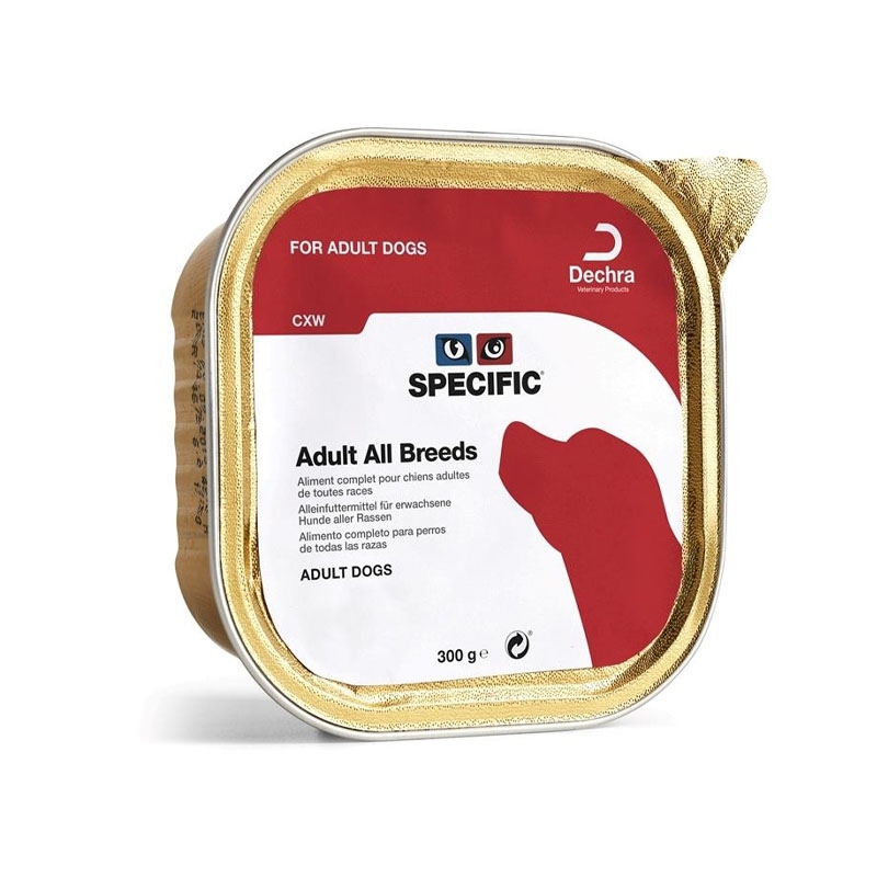 Comida humeda para perros: Comida humeda para perros adultos Specific CXW 300 grs. Indicado para perros adultos de todas las razas y tamaños.