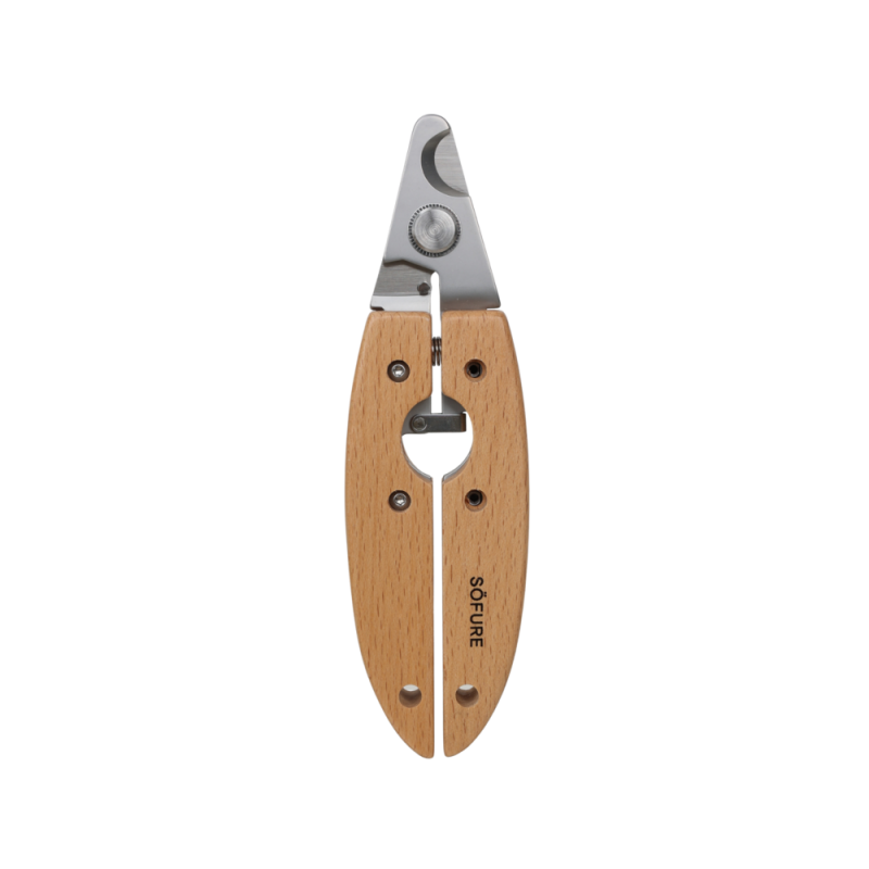 El Nail Trimmer de Söfure permite cortes precisos y seguros en uñas de perros y gatos. Mango ergonómico de madera de haya y bloqueo de seguridad para un uso cómodo y controlado.