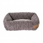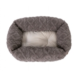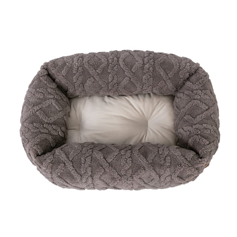 Cama tipo cuna para perros y gatos en gris claro, acolchada y confortable, con tejido polar cálido y cojín extraíble para mayor comodidad.