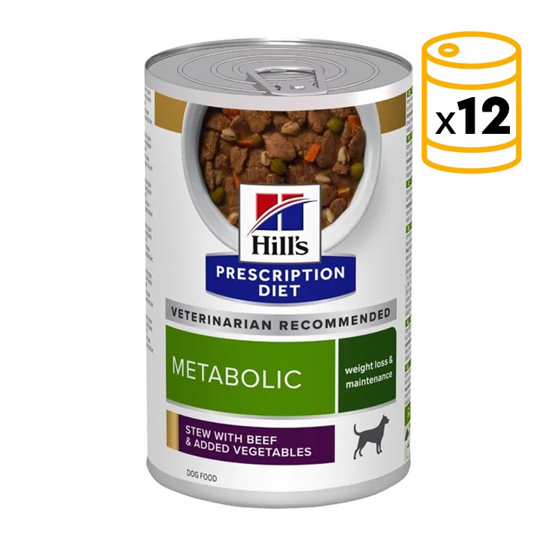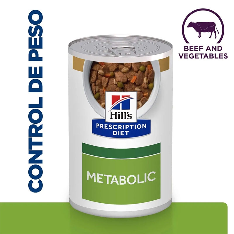 Hill’s Prescription Diet Metabolic con vacuno y verduras es un alimento húmedo creado para facilitar el adelgazamiento en perros con sobrepeso. Su fórmula equilibrada mantiene el bienestar general mientras reduce la grasa corporal de forma saludable.