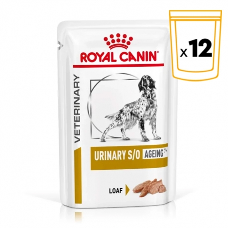 Royal Canin Vet. Canine Urinary S/O Ageing +7, es una comida húmeda dietética para perros mayores de 7 años con problemas urinarios. Su fórmula especial les proporciona todos los nutrientes que necesitan en esta nueva etapa de su vida a la vez que les ayuda a disolver los cálculos de estruvita y oxalato. Además, no solo los disuelve, sino que también reduce su reaparación.