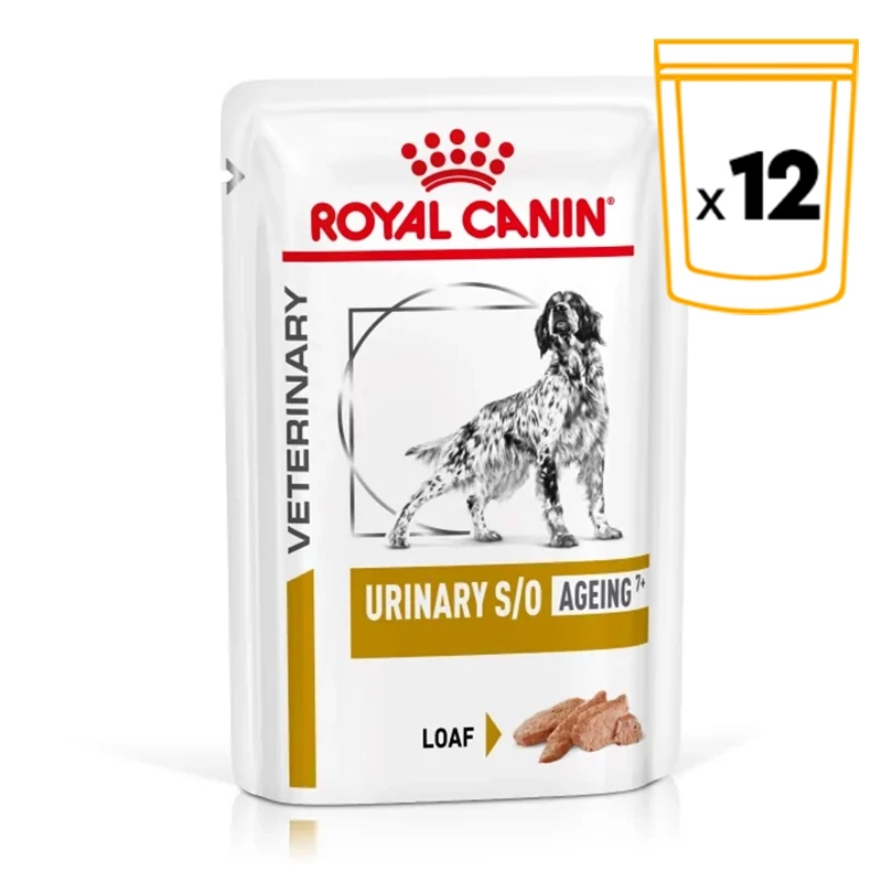 ROYAL CANIN® Urinary S/O Ageing 7+ está diseñado para perros mayores con problemas urinarios como cálculos y cristales de estruvita. Esta dieta es eficaz para disolver los cálculos de estruvita y está formulada específicamente para abordar hasta el 80% de los cálculos urinarios.