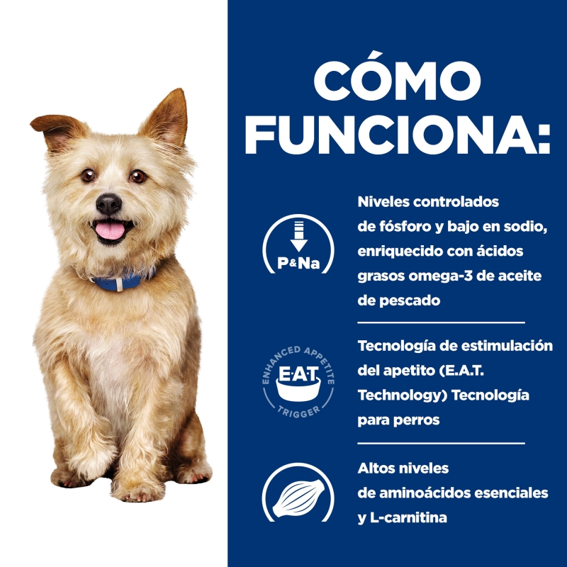 Operando mediante un control del fósforo y la reducción del sodio, enriquecido con omega-3 del aceite de pescado.