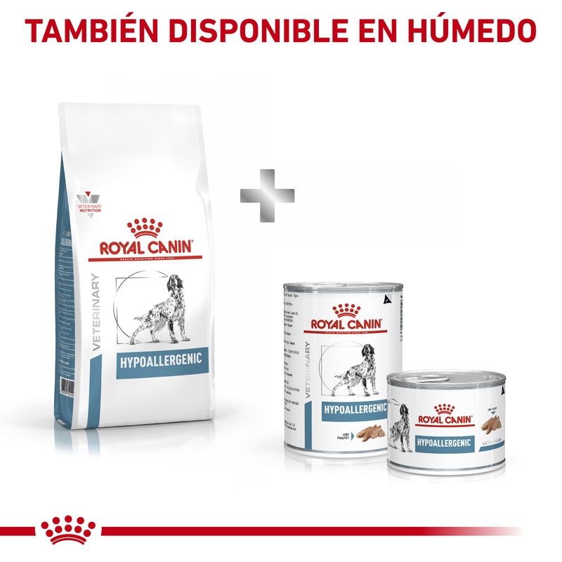 ROYAL CANIN® HYPOALLERGENIC seco es un alimento dietético completo para perros, formulado para reducir las intolerancias a ingredientes y nutrientes. Fuentes seleccionadas de proteínas y carbohidratos.RECOMENDACIONES: Se recomienda consultar a un veterinario antes de utilizarlo.Utilizar HYPOALLERGENIC seco de 3 a 8 semanas.Si los signos de intolerancia desaparecen, este alimento puede utilizarse indefinidamente.