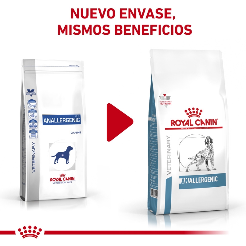 Royal Canin ANALLERGENIC para perros es una dieta completa para reducir la intolerancia. Proteinas seleccionadas hidrolizadas y carbohidratos purificados.