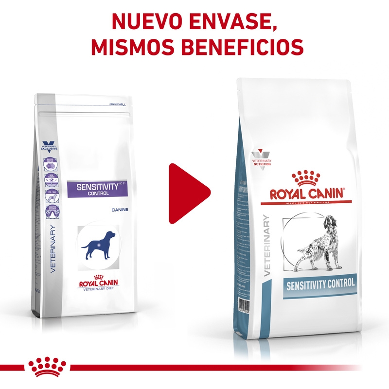 El pienso Royal Canin Sensitivity Control para perros se vende en bolsas de 1,5kg, 7kg y 14kg. Este alimento de la gama Veterinary Diets está indicado para perros con intolerancias a ingredientes o nutrientes. Es una dieta compuesta de proteínas e hidratos de carbono seleccionados para reducir posibilidades de alergias alimentarias con signos dermatológicos y/o digestivos.