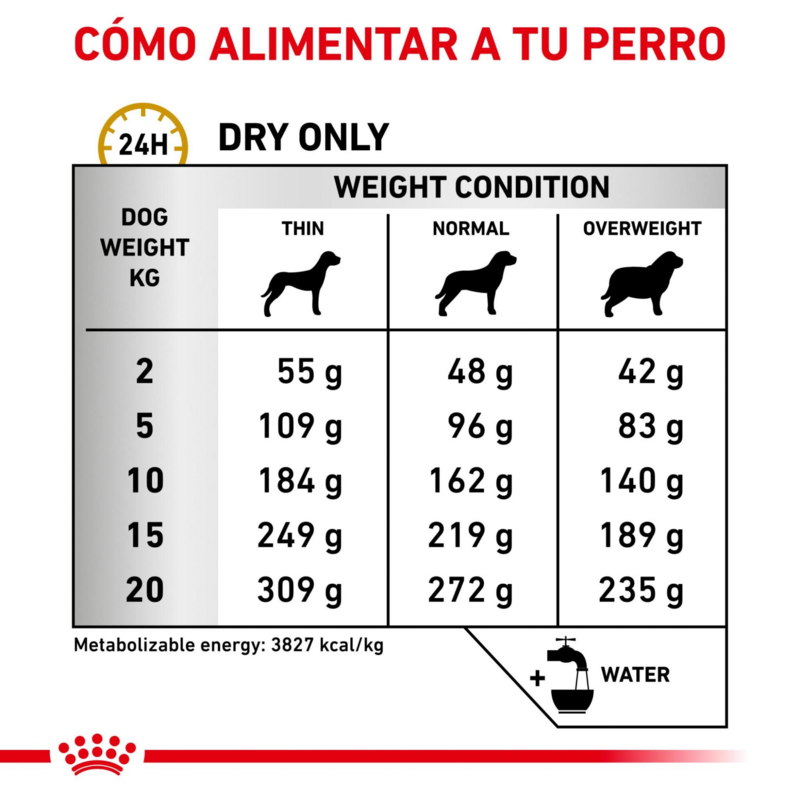 | Peso del perro | Delgado | - | Normal | - | Sobrepeso | - |