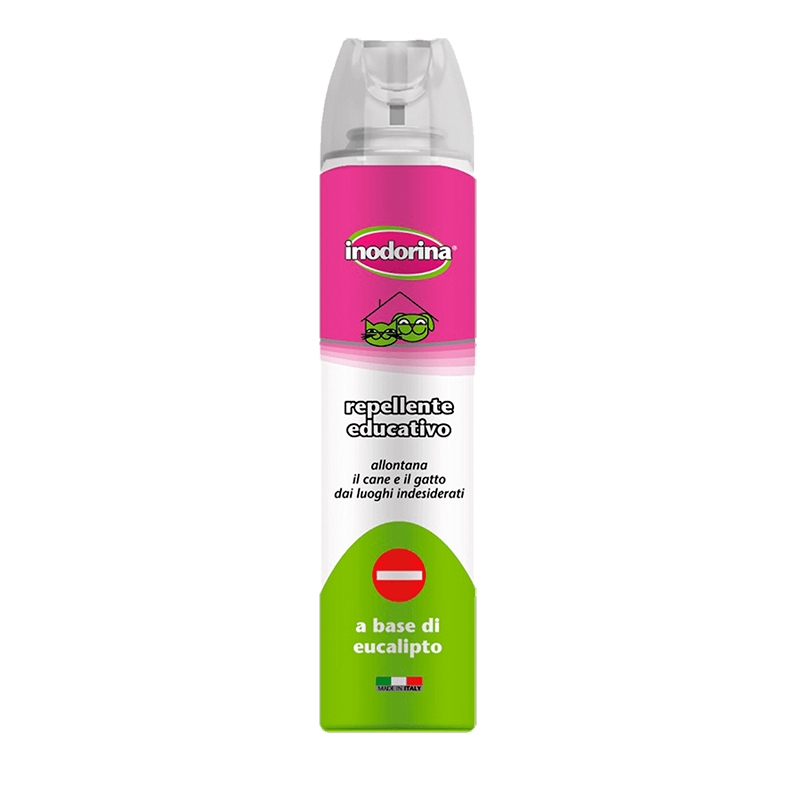 El Inodorina Repelente Educativo con Eucalipto está formulado para ayudar en el adiestramiento de perros y gatos, manteniéndolos alejados de zonas donde no se desea su presencia. Su composición a base de extracto natural de eucalipto crea una barrera olfativa que actúa como disuasorio, sin causar molestias ni daños a los animales o a las personas.