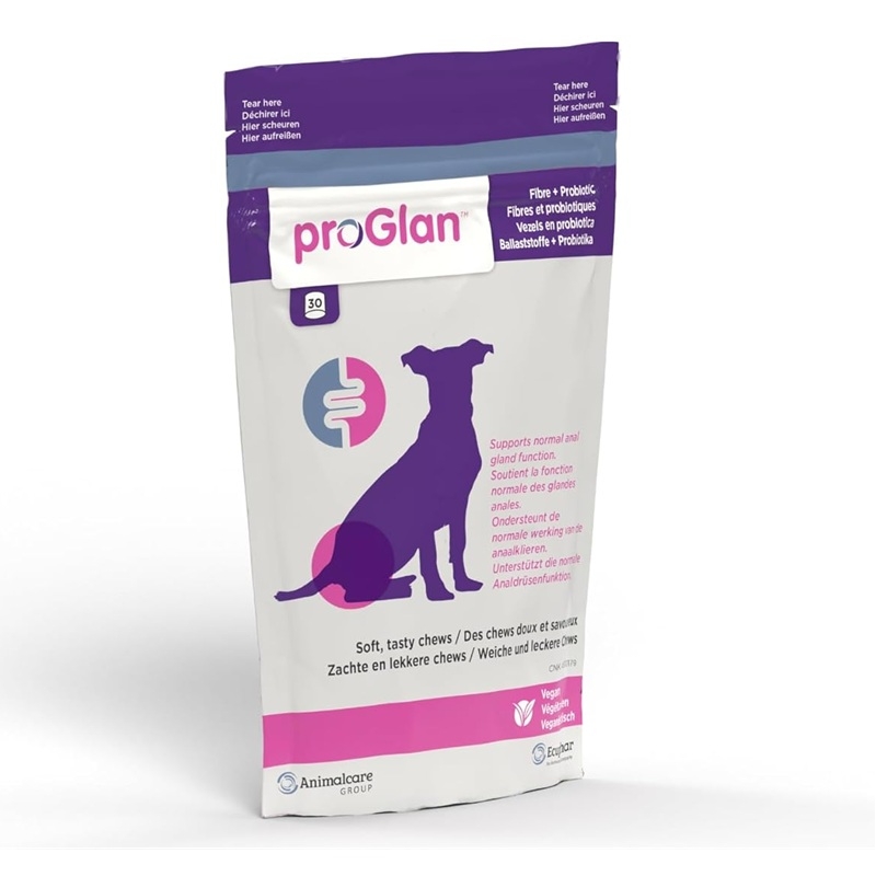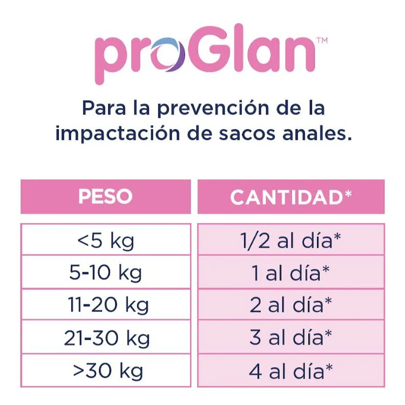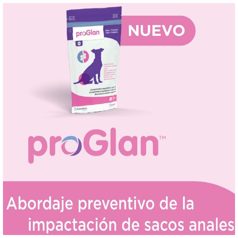 Proglan de Ecuphar es un suplemento para glándulas anales formulado para ayudar al vaciado anal natural en perros. Sus croquetas masticables combinan fibras naturales (salvado de arroz y semillas de calabaza), Echinacea y Bacillus velezensis para promover heces firmes, apoyar el sistema inmunitario y mantener la salud digestiva. Una opción práctica y apetitosa para cuidar zonas sensibles de tu peludo.