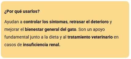En gatos diagnosticados con enfermedad renal, felinos de edad avanzada o con antecedentes de problemas renales. Siempre bajo supervisión veterinaria.