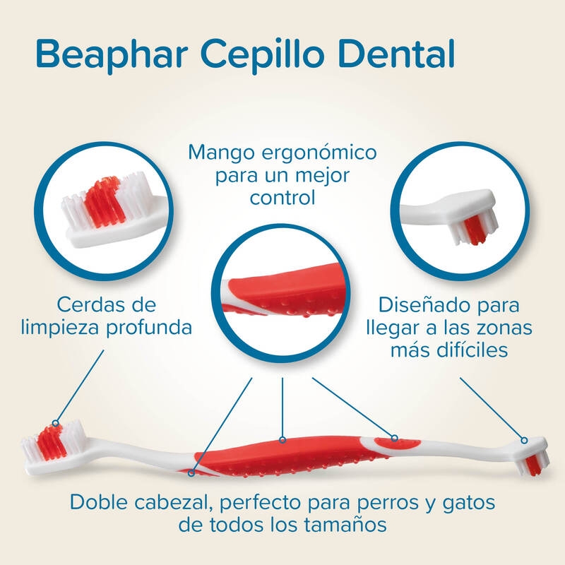 Uso óptimo con Pasta Dental Beaphar: Para obtener los mejores resultados en la limpieza dental de tu animal, se recomienda utilizar este cepillo dental junto con la Pasta Dental Beaphar, ofreciendo una combinación eficaz para mantener la salud bucal de tu perro o gato.