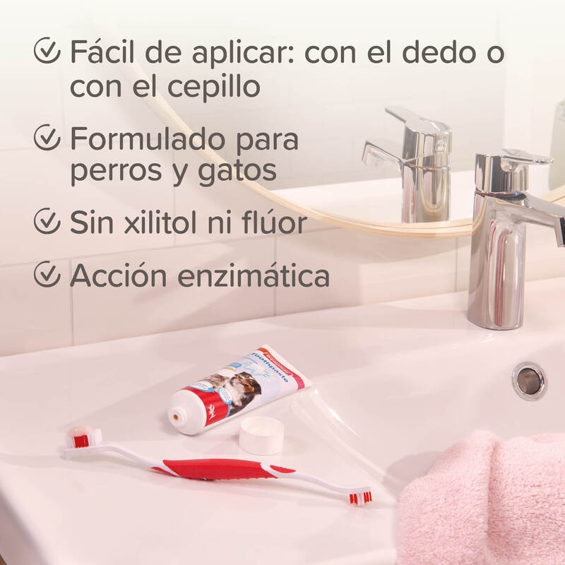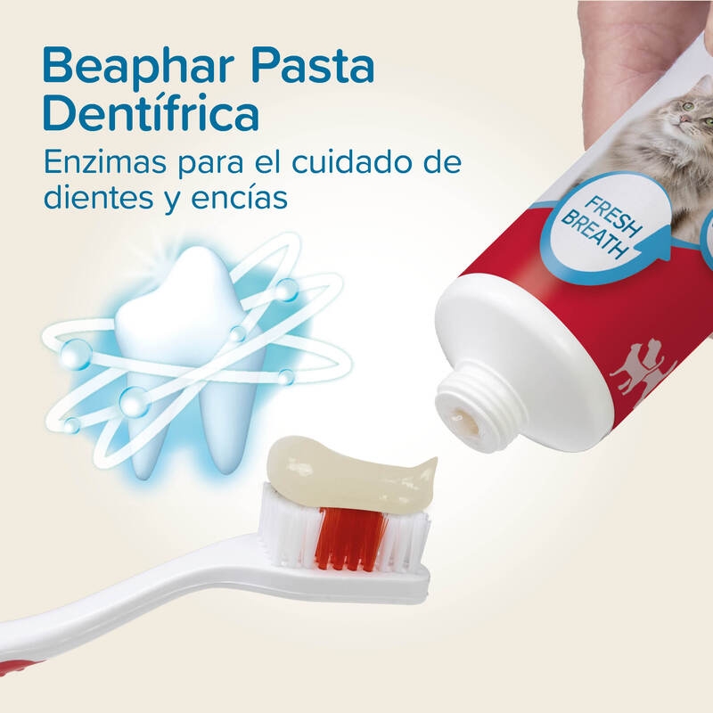 Es recomendable complementar el uso de esta pasta dentífrica con el cepillo de dientes Beaphar para obtener resultados óptimos. Su fórmula contiene enzimas como la proteasa y la glucosa oxidasa, que actúan eficazmente para prevenir la formación de placa y sarro. El sabor a hígado agrega un toque extra de disfrute para tu mascota durante el cepillado, convirtiendo el cuidado dental en una experiencia agradable.