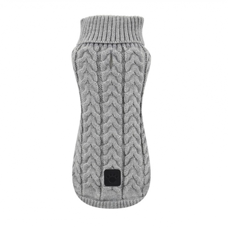 El suéter de punto Nayeco en color gris ha sido diseñado para ofrecer calor y comodidad a tu mascota durante el invierno. Confeccionado en punto suave y cálido, abriga sin restringir el movimiento. Su patrón de trenza le da un aspecto elegante y adaptable, perfecto para la ciudad o el campo.