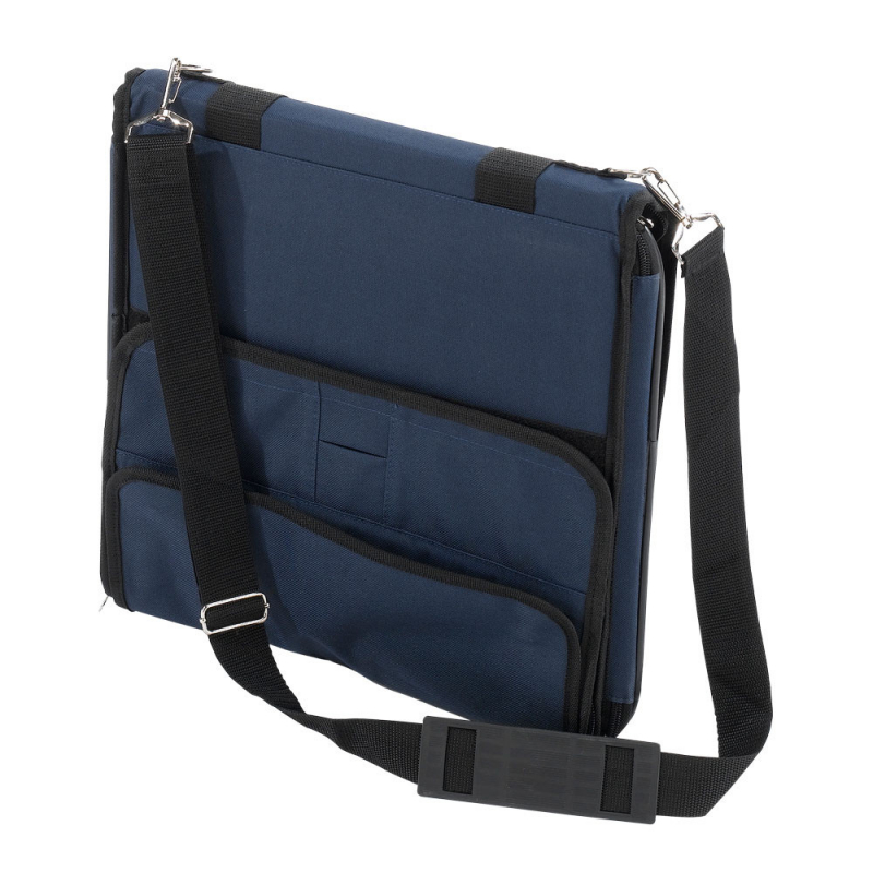 Fabricada con materiales de alta calidad, esta bolsa ofrece una estructura firme y segura. Su base rígida asegura la estabilidad, mientras que las asas acolchadas proporcionan un agarre cómodo, ya sea en la mano o sobre el hombro.