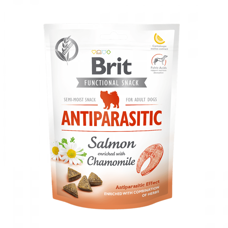 Incluye Brit Care Functional Snack Antiparasitic en la dieta de tu perro para un snack nutritivo que también mejora su bienestar general.