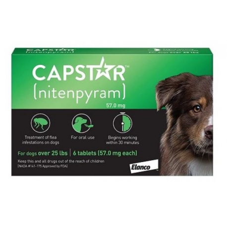 Capstar, especialmente formulado para perros adultos de gran envergadura, se presenta como un antiparasitario altamente eficaz en formato de pastilla oral. Su fórmula completa y potente destaca por su eficacia en el combate contra las pulgas, logrando la eliminación de estos parásitos en aproximadamente una hora.