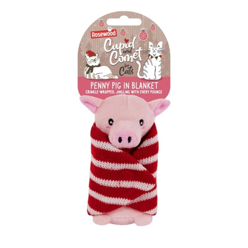 Peluche navideño para gatos con diseño de cerdito Pig-in-Blanket, blando y liviano, perfecto para juego en casa y momentos de relajo.