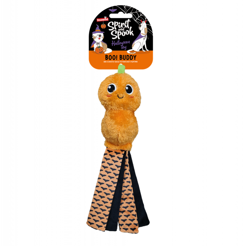 El Rosewood Peluche Calabaza Buddy es un juguete interactivo ideal para aportar diversión a los juegos de tu peludo. Su forma de calabaza y los colores vivos lo convierten en un compañero irresistible durante la temporada de Halloween.