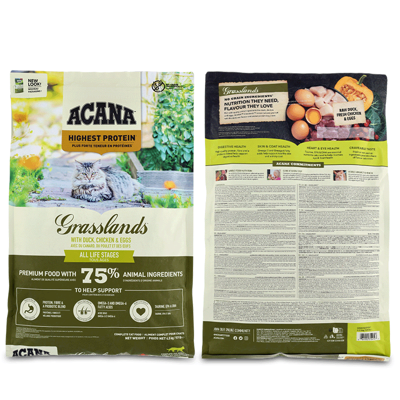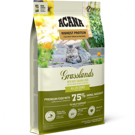 Para mantener la salud y vitalidad de tu felino, es esencial proporcionarle una alimentación rica en proteínas de origen animal. ACANA Grasslands, inspirado en los extensos paisajes del norte de Canadá, ofrece una fórmula excepcional que incluye pollo, pato, huevos y pescado salvaje. Estos componentes se presentan en porciones de presa completa, que incluyen carne, órganos, cartílagos y huesos, asegurando una nutrición completa y equilibrada.