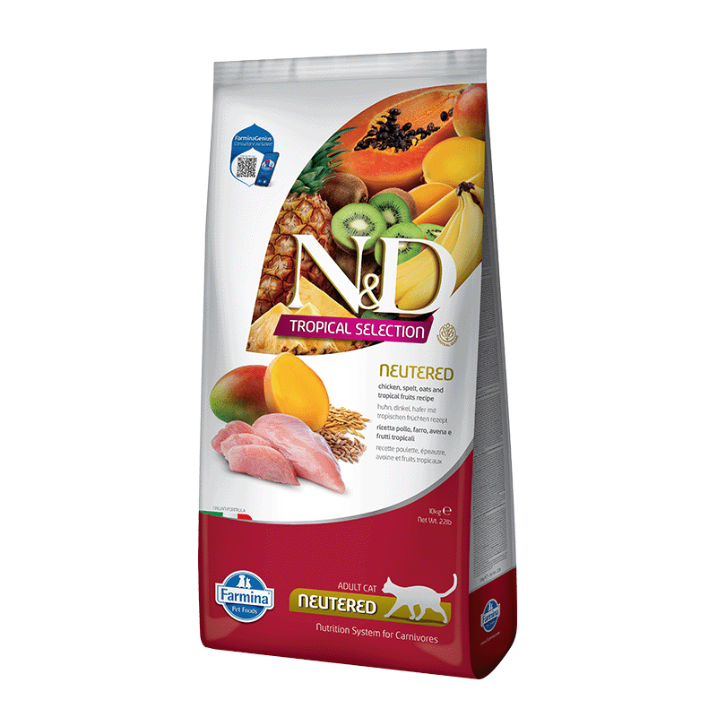 Farmina N&D Gato Tropical Selection Pollo ha sido cuidadosamente diseñado para satisfacer las necesidades específicas de los gatos esterilizados, ofreciendo no solo una nutrición completa y equilibrada, sino también una experiencia culinaria excepcional.