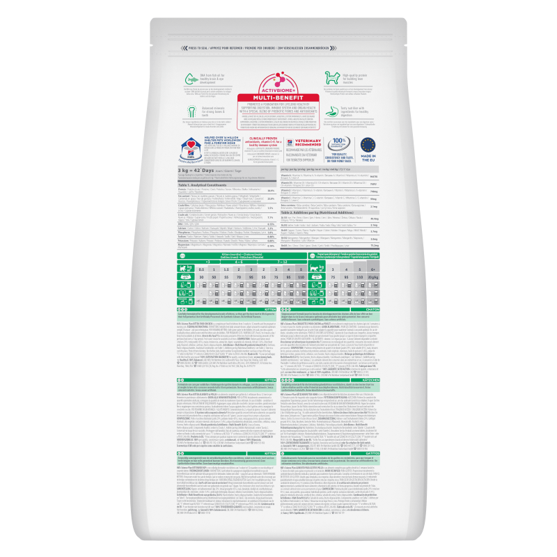 Hill's Science Plan Kitten Chicken Food is designed for kittens aged 3 weeks up to 12 months.