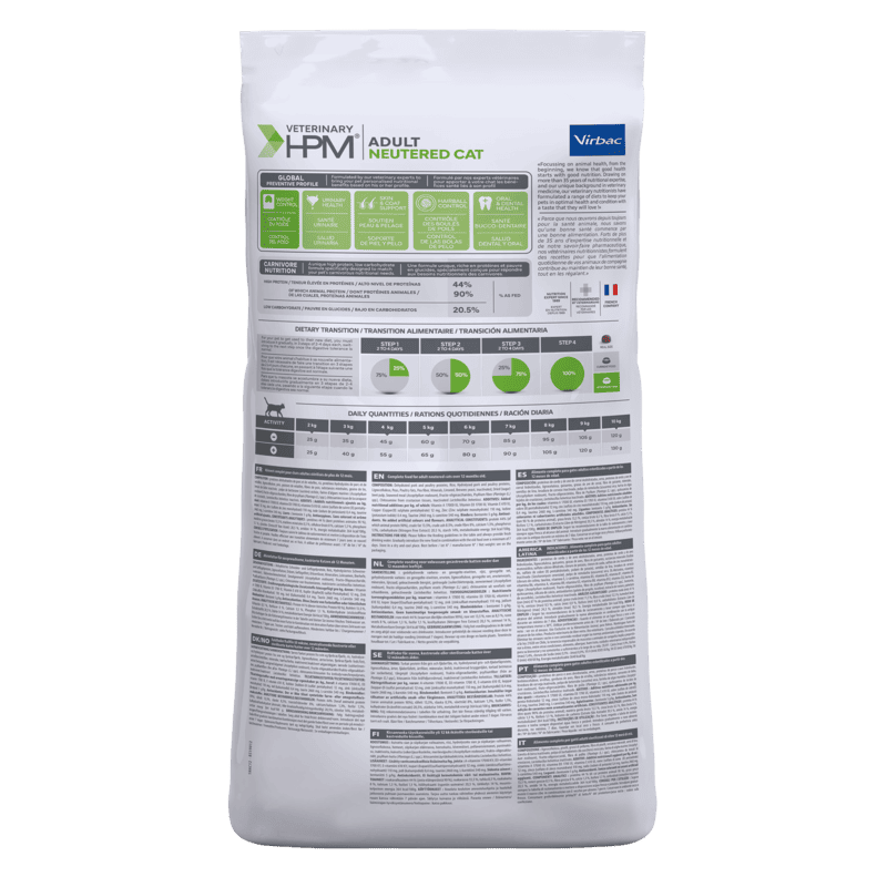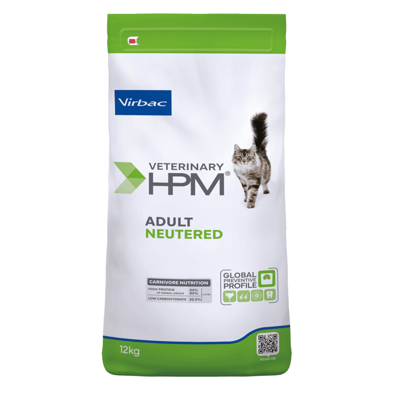 Veterinary HPM Adult Neutered Cat es un alimento completo diseñado específicamente para gatos adultos esterilizados a partir de un año de edad.