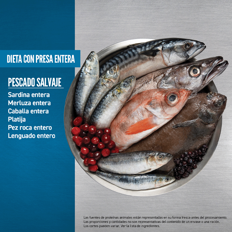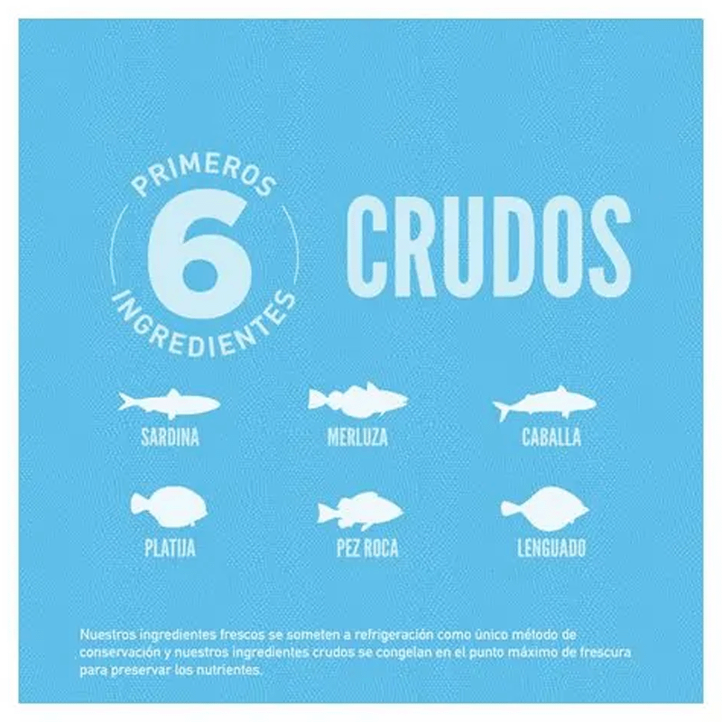 Ofrece a tu gato una nutrición biológicamente adecuada gracias a los frescos ingredientes de pescado que impulsan su vitalidad.